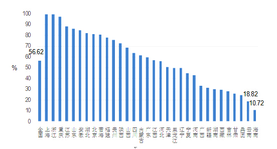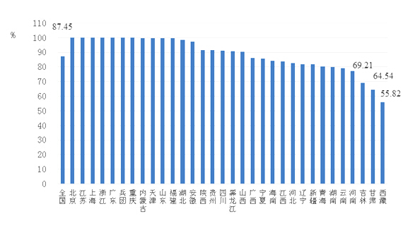 图1 2016年全国各省接入互联网的中小学比例情况
