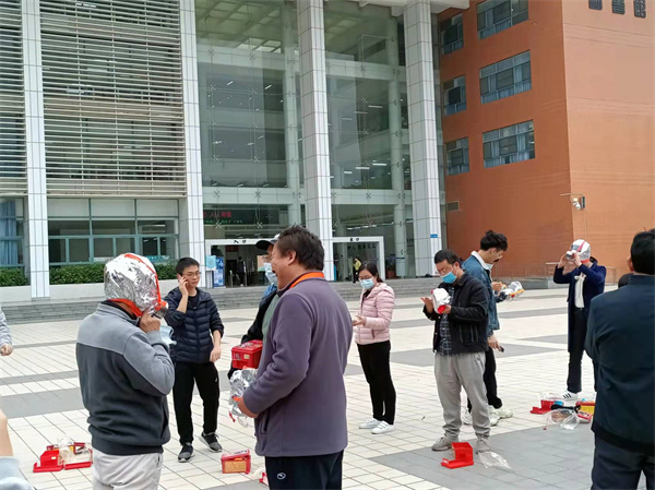理论知识讲解结束后,保卫处老师组织培训教职工对此次培训内容逐人逐个进行“复盘”,确保每位培训教职工掌握正确使用防烟面罩和灭火器的方法。教职工在现场佩戴防烟面罩,并在安全员的指导下开展干粉灭火器使用的实战演练。