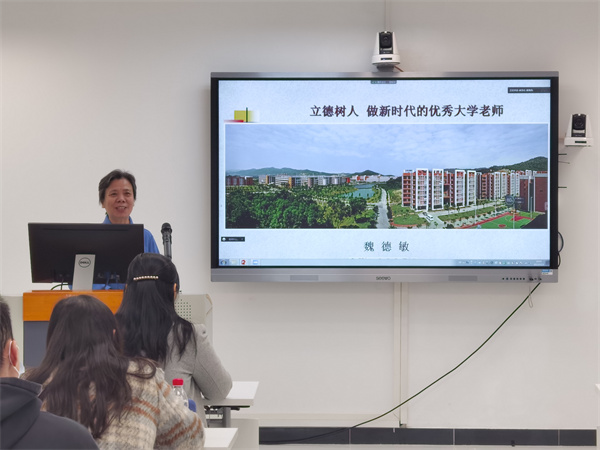 魏德敏与新教师分享“立德树人,做新时代的优秀大学老师”。她从新时代教育需要高素质、专业化的教师队伍入手,用生动的故事向新教师分享了她对优秀大学教师的标准、如何上好每一门课、何为科学精神、如何进行教育改革与创新的理解。她认为,要上好一门课需广泛阅读和分析教材,做所有的例题和习题,注重总结重点和难点,教学与工程实际相结合,要坚持“可怀疑性原则”开展教育改革与创新,这样才能真正地推陈出新、去伪求真,并结合自己的亲身经历分享了读书的重要性,要“好读书、读好书”,并勉励青年教师要:心甘于学、业精于勤,行胜于言、功大于名,教学科研、并举互促,名师出高徒、徒高出师名。