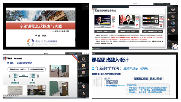 12月6日晚,季静教授、管理学院崔译文副教授、电子信息工程学院龙晓燕老师、国际商学院江艳老师做“课程思政”主题分享。季静作《专业课程思政探索与实践》主题报告,她以土木交通类专业课程为例,分享了专业课程的课程思政总体设计,并通过《交通设计》课程思政设计、课程思政第一课、课程思政线下融入课、课程思政线上讨论环节等4个案例详细介绍了课程思政教学探索与实践。