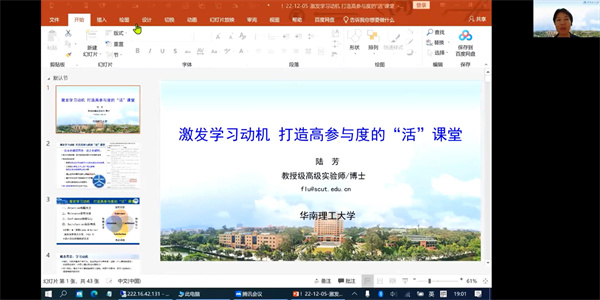 培训邀请了华南理工大学陆芳教授、我校土木工程学院院长季静教授2位专家,以及第三届全国高校混合式教学设计创新大赛获奖教师王金鹏,广东省第六届高校(本科)青年教师教学大赛获奖教师李牧、戴玲和刘佳琼,广东省课程思政示范课程负责人崔译文、龙晓燕、江艳等我校优秀青年教师做教学示范与分享。我校近3年新入职教师、教学岗B类教师、45岁以下青年教师等150多人线上线下参会。