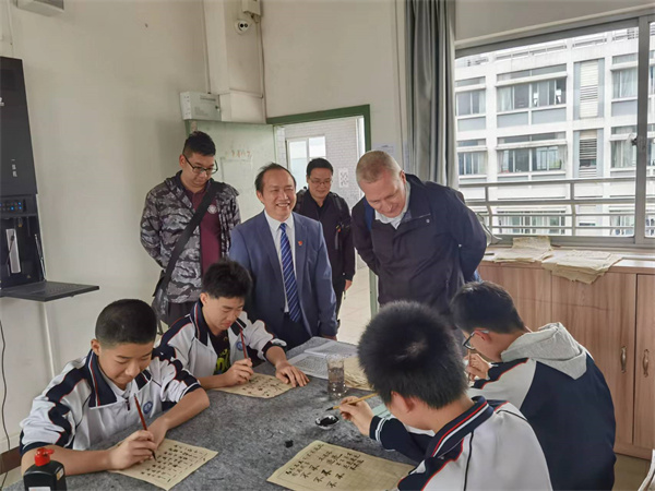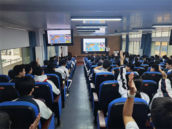 与此同时,在教工会议室还进行着一场别开生面的讲座,来自荷兰NHL-Stenden应用技术大学、我校机械工程学院/机器人工程学院的客座教授Nico Booij为高一、高二约200余名学生带来爱护环境的讲座。他深入浅出、幽默生动的内容引发学生阵阵掌声笑声,同学们积极举手互动,现场氛围热烈。讲座最后,Nico Booij表示,同学们应该为自己生在瑶族这片土地感到由衷自豪,这片土地人与自然和谐相处,植被、森林都被保护得很好,同学们要努力学习知识,未来深深扎根于这片土地。