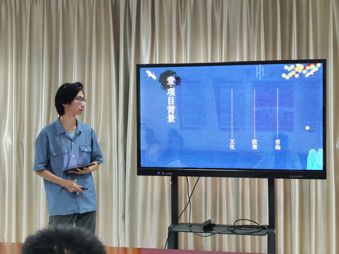 于泽人现场演讲《鸿翊舍—中华优秀文化传承与文旅创新平台》项目(卢蕴祺 摄)