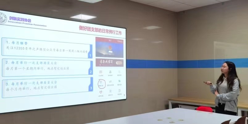 组织委员进行团支部的各支部委员和工作内容的介绍 (卢蕴祺 摄)