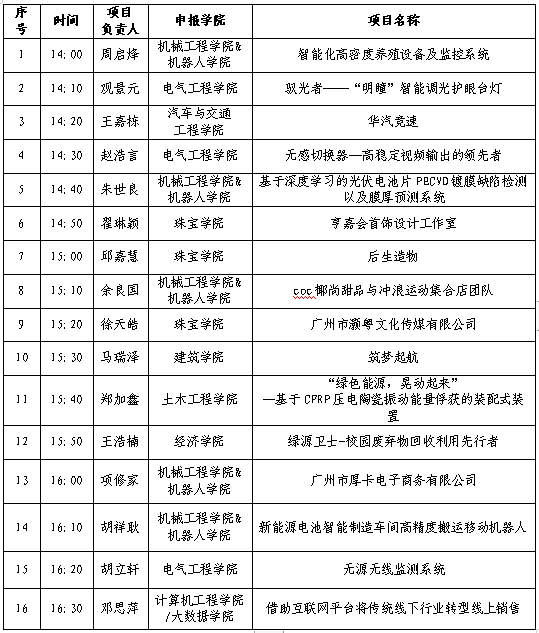 根据“关于开展2023年广州城市理工学院‘一院一创’学生创业项目遴选的通知”学院积极响应,至2023年12月 日4共报来29项学生创业项目。经过研究,现对遴选出的16项学生创业项目进行答辩,具体安排如下: